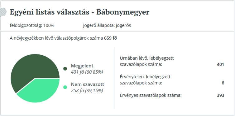 2019 – helyI választási Iroda – Bábonymegyer mandátum szerzés